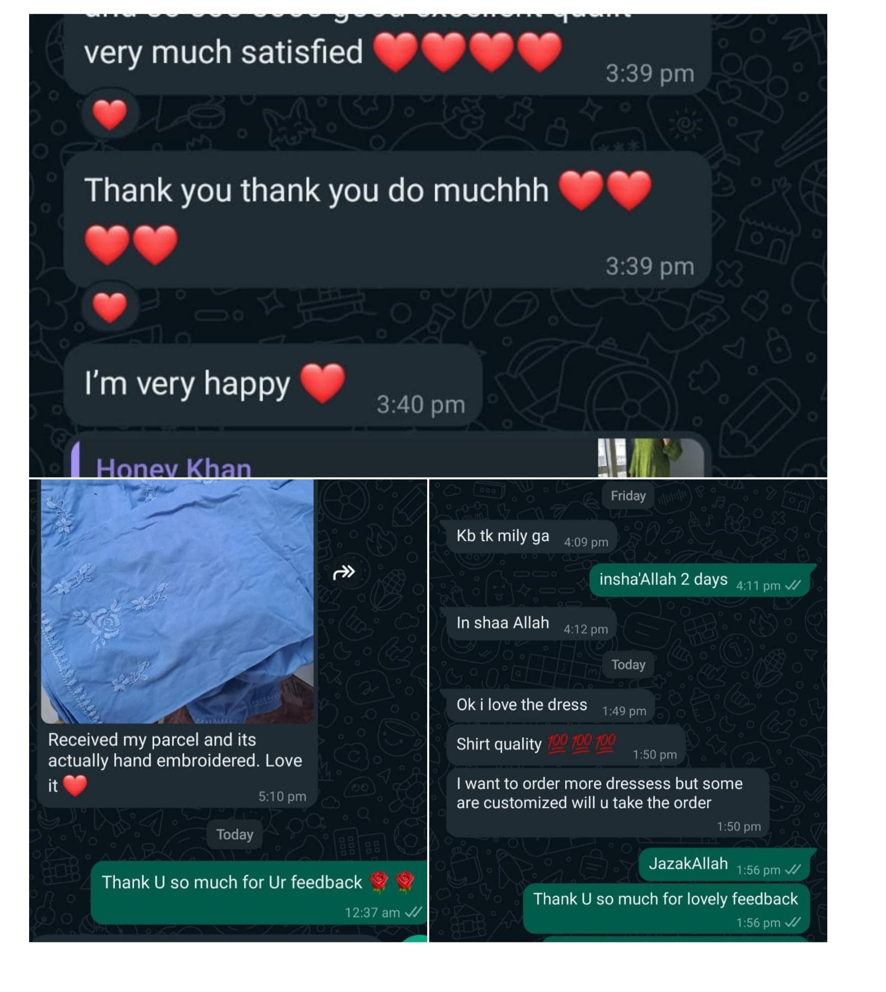 Alhamduillah 100,000 Satisfied customers around the globe. All our products are hand-picked, hand embroidered,unique with the premium quality fabric And our designs are sophisticated, fresh and exciting.