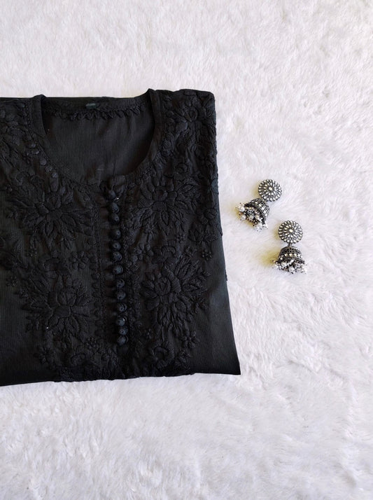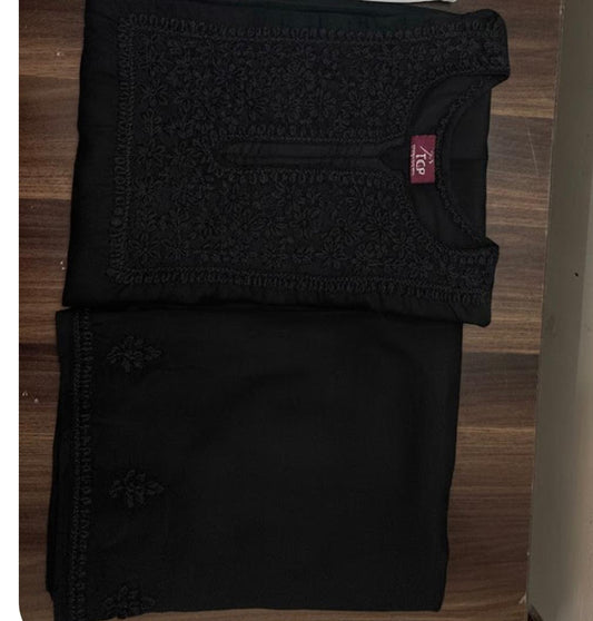 Jet Black Hand-Embroidered Cotton Suit – 3 Piece