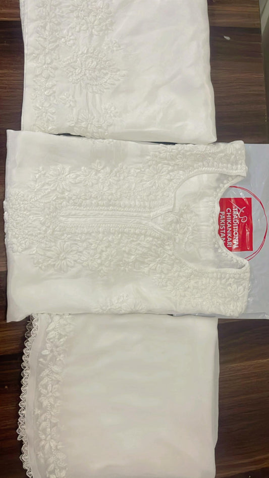 Handmade-Chikankari Premium Linen Set 3 PIECE