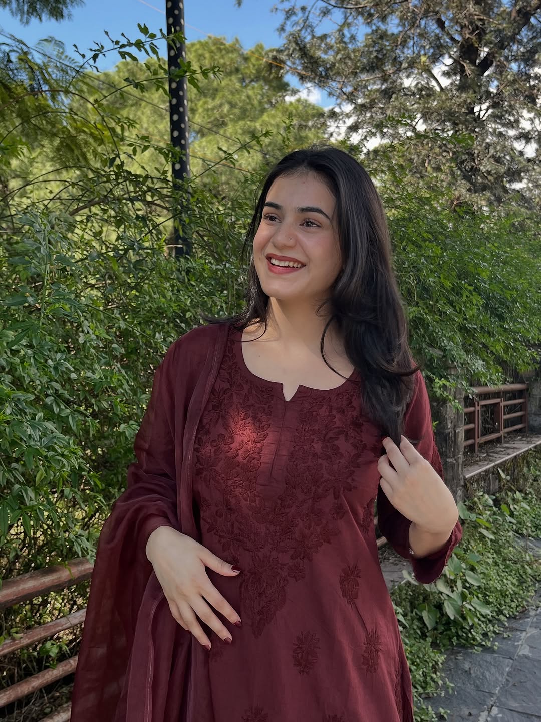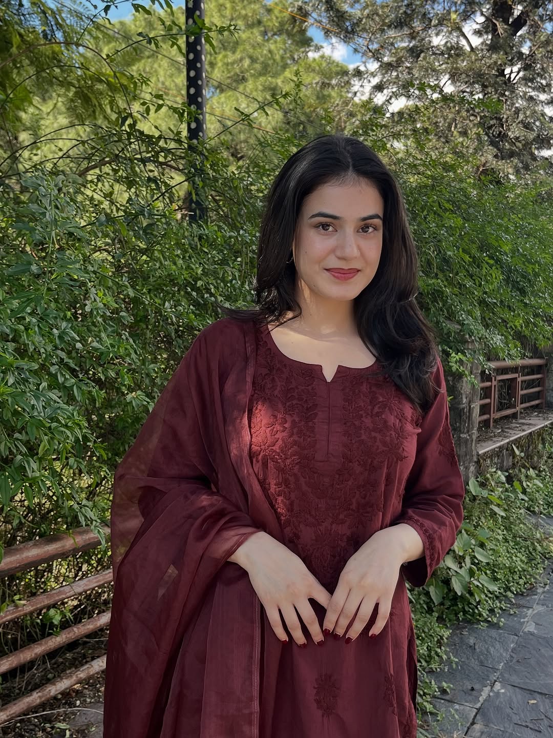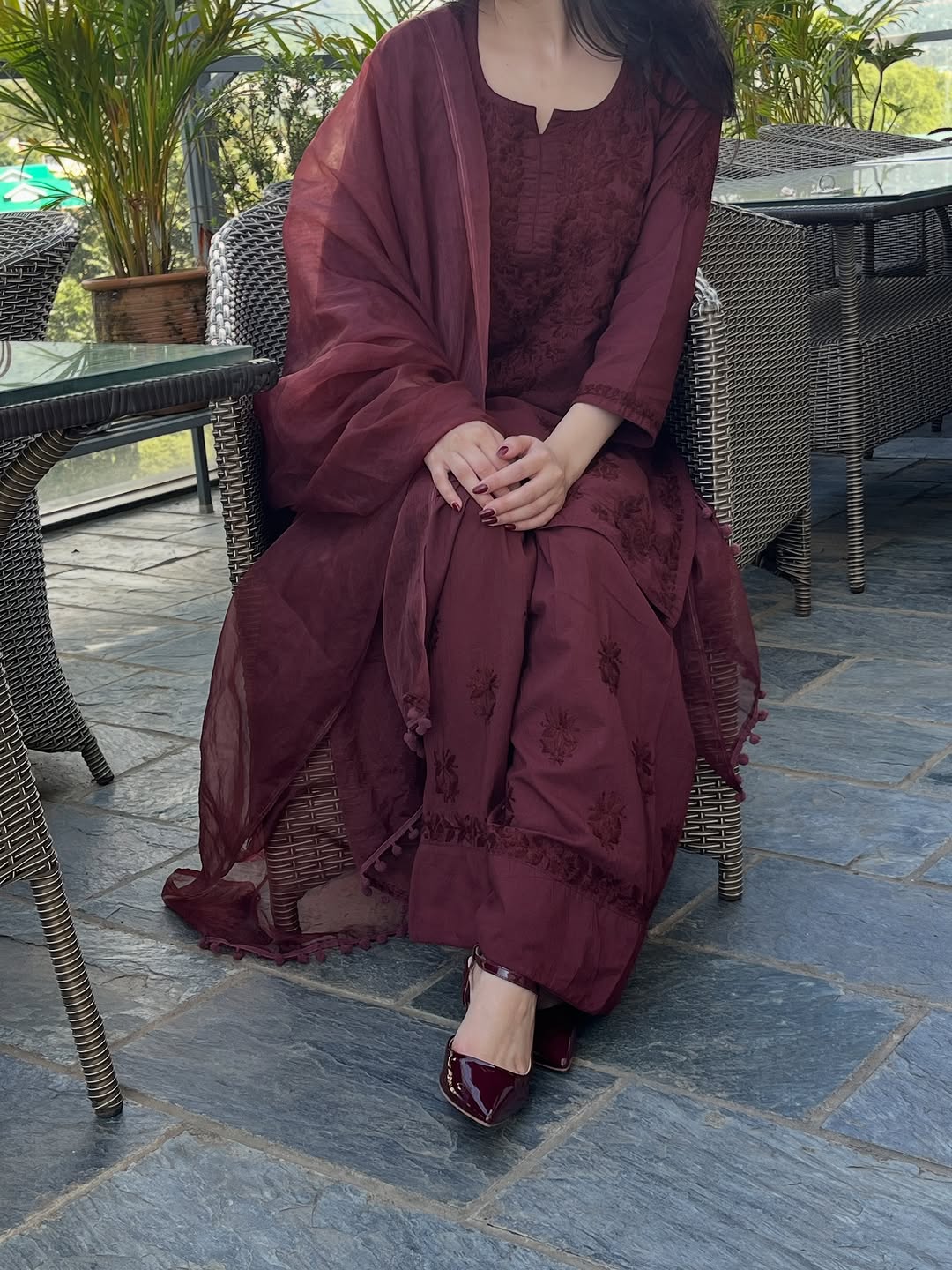 Beautiful farshi Shalwar Lucknowi Hand Embroidered chikankari 3 piece set for complete your look.