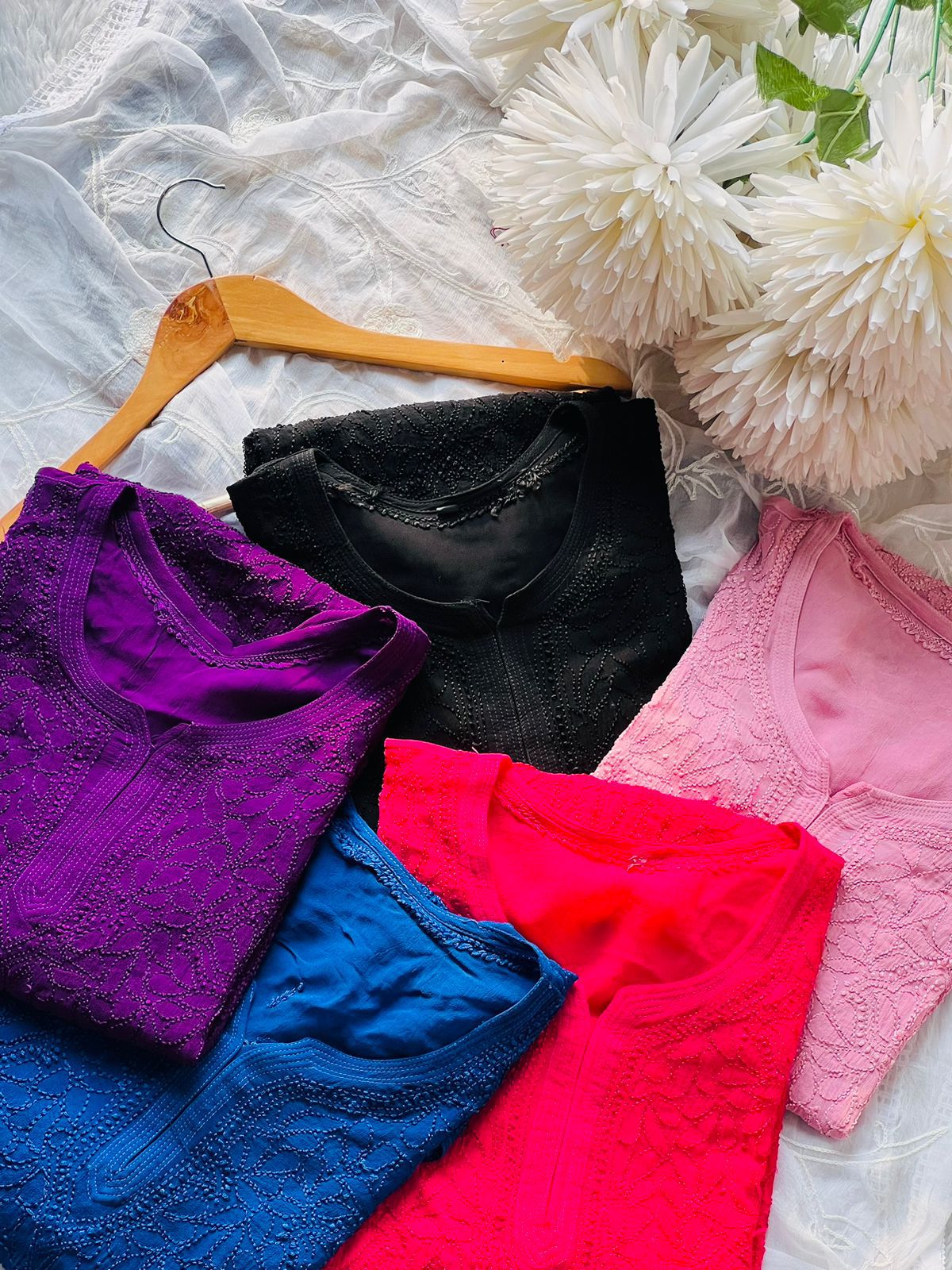 There can be slight variation in embroidery as every single piece is handmade. There may be 10-15% difference in colour as the screen/display settings of every phone differs.