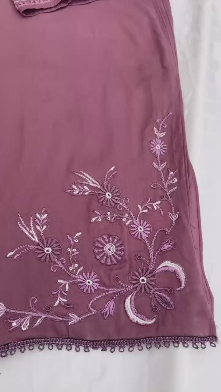 3Piece Hand Embroidery with Mirror work on Neckline, sides chawk work top to bottom with a modern twist that adds a touch of sophistication to any outfit. Comfortable and absolutely a hit when you are gonna wear it to any occasion.