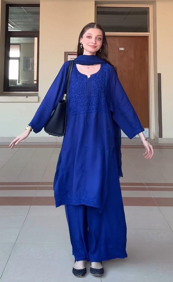 Beautiful rozkayy wearing Our 3 piece ChikanKari Set Premium linen Fabric with pure chiffon Long dupata.