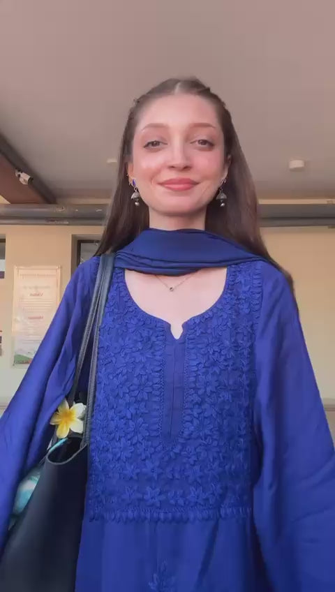 Lucknowi Hand Embroidered chikankari 3 piece set for complete your look.