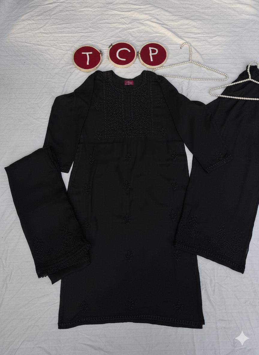 Lucknowi Hand Embroidered chikankari 3 piece set for complete your look.