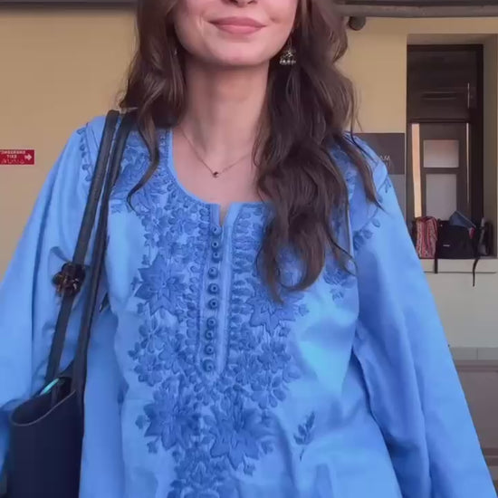 Hand Embroidered ChickenQari Premium Cotton Long Kurta with Trouser premium quality fabric.You need this in all the seasons. They're the most versatile piece of clothing you can own.The Perfect Coord set for your wardrobe!
