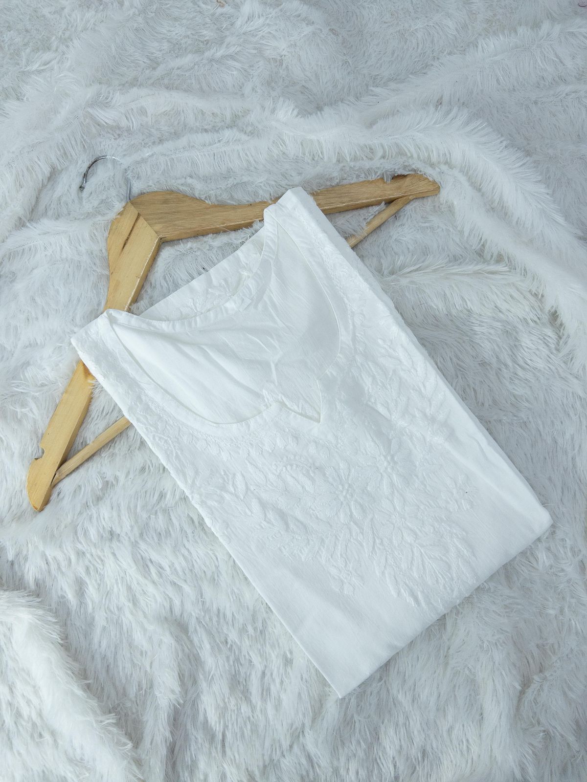 Premium Cotton short Kurties with chikankari handwork in Floral pattern.