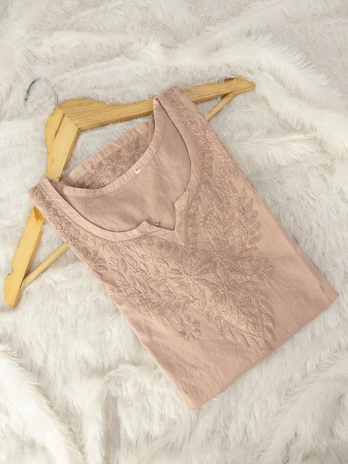 There can be slight variation in embroidery as every single piece is handmade. There may be 10-15% difference in colour as the screen/display settings of every phone differs.