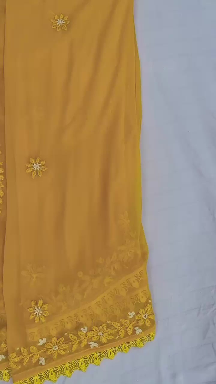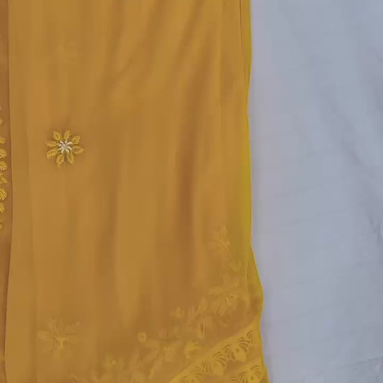 Premium Viscose Georgette Yellow 3Piece Authentic Hand Embroidery lucknowi Chikankari that adds a touch of sophistication to any outfit.