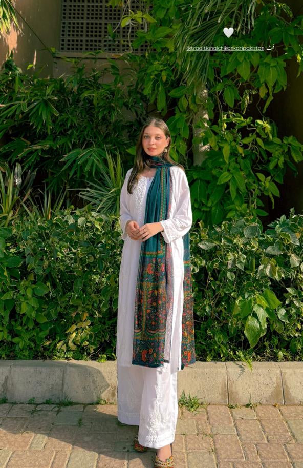 Hand Embroidered ChickenQari Cotton lawn Long Kurta with Wide leg Trouser premium quality fabric.You need this in all the seasons. They're the most versatile piece of clothing you can own.The Perfect Coord set for your wardrobe!