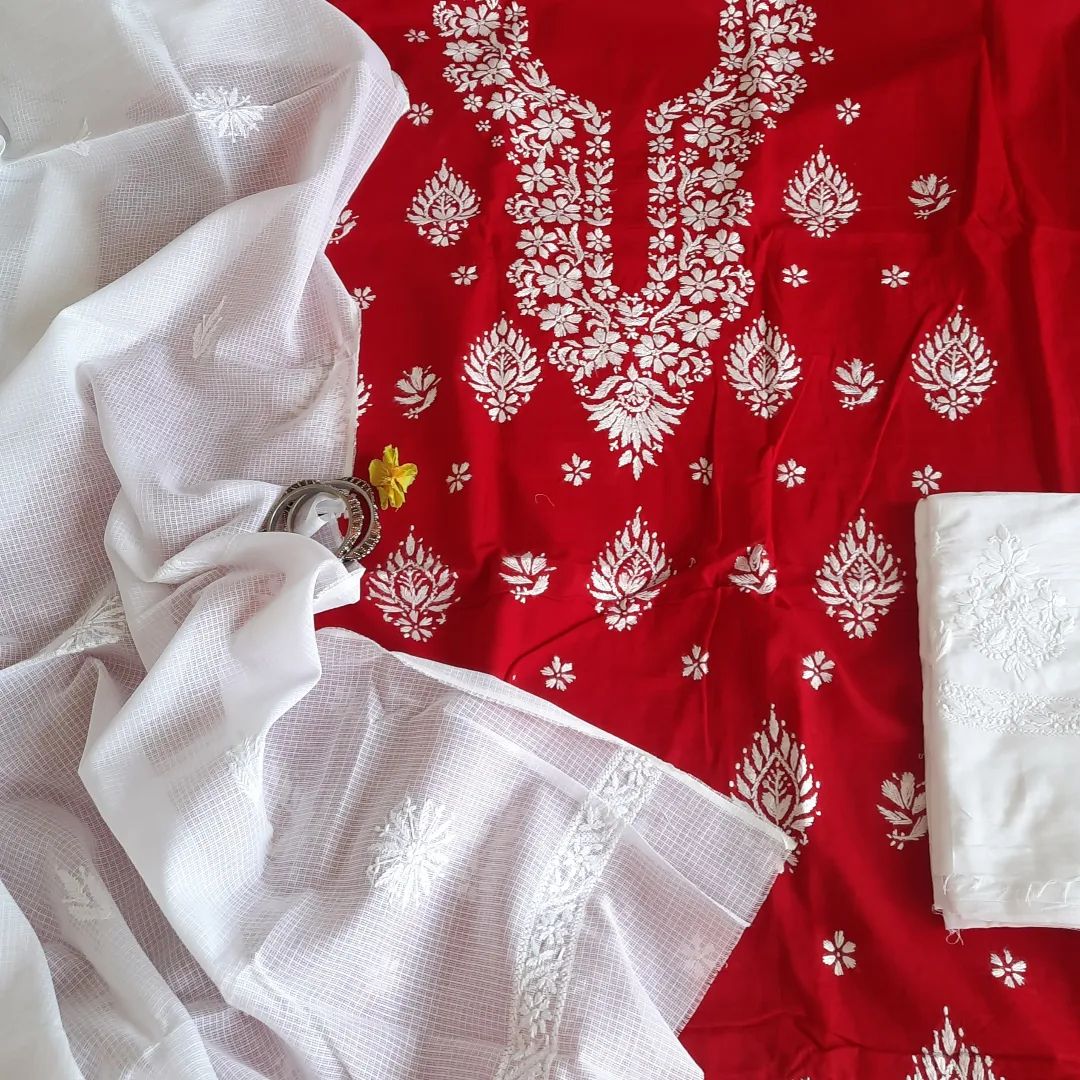 Unstitched 3 piece Premium  cotton Impeccably crafted from premium fabric, this stunning piece is adorned with intricate chikankari embroidery, exuding sophistication. Elevate your style and exude elegance with this essential suit.